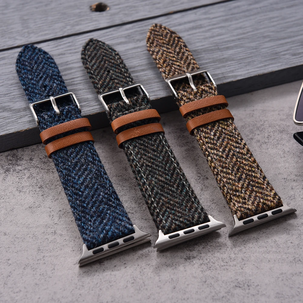 38mm 40mm 41mm 42mm 44 45 49mm Woolen Leather Watch Strap for Apple Watch Band Iwatch Series 8 7 SE 6 5 4 3 2 1 Watch Bracelets